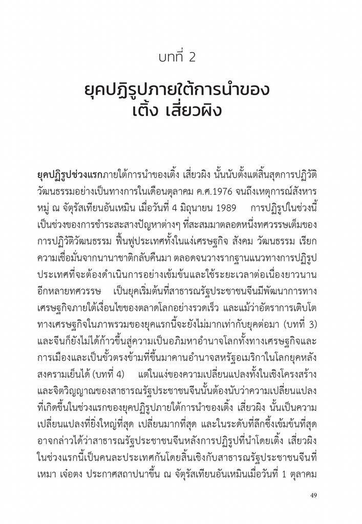 บทที่ 2 ยุคปฏิรูปภายใต้การนำของ เติ้ง เสี่ยวผิง