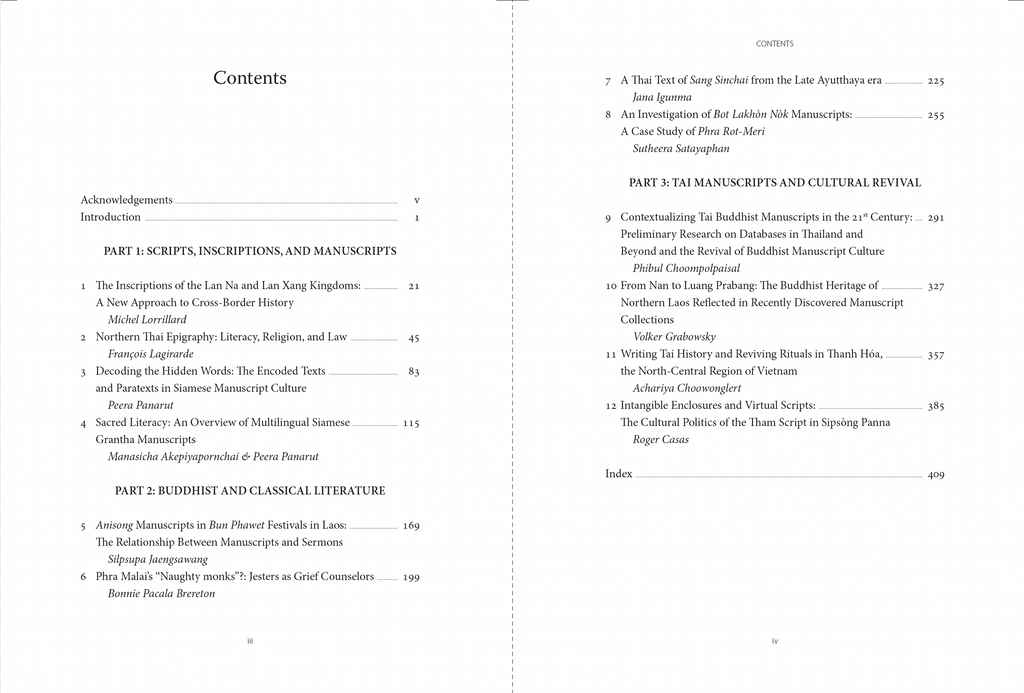During the past four decades an impressive corpus of manuscripts and epigraphical material in Thailand, Laos, and adjacent Tai-speaking areas has been surveyed, documented, and digitized. Though manuscripts (written on palm-leaf, various forms of paper, cloth, bamboo, and other organic material) and inscriptions (on stone, metal, wood, etc.) may be considered “things of the past” in a modern world dominated by book printing and digital technologies, they continue to be produced in Thailand, Laos, and many adjacent Tai-speaking areas. Scholarly interest in these objects encompasses philological and historical studies of the texts themselves, as well as study of the material aspects that designate these materials as culturally significant. This collection explores the production, use, and transmission of manuscripts both as containers of traditional knowledge and as objects used in daily life. Special attention is paid to the significant influence manuscripts and inscriptions have had on each other, and to the relationship between modernity and the traditional manuscript cultures of the Tai world. The collection also addresses the preservation and storage of manuscripts, particularly in different kinds of repositories, ranging from diverse local catalogs to extensive international collections in the West. Finally, the book includes accounts by natural scientists of their work to determine the origin of writing materials and substances used to create manuscripts, to date manuscripts and inscriptions of the past, to reconstruct different script layers, among other topics.