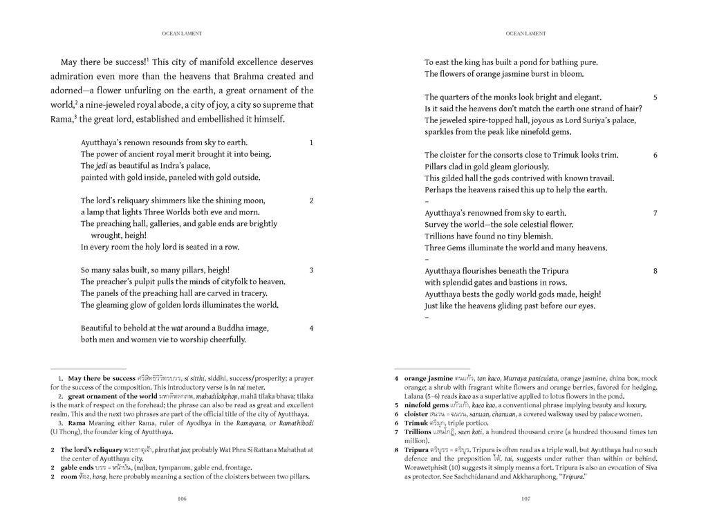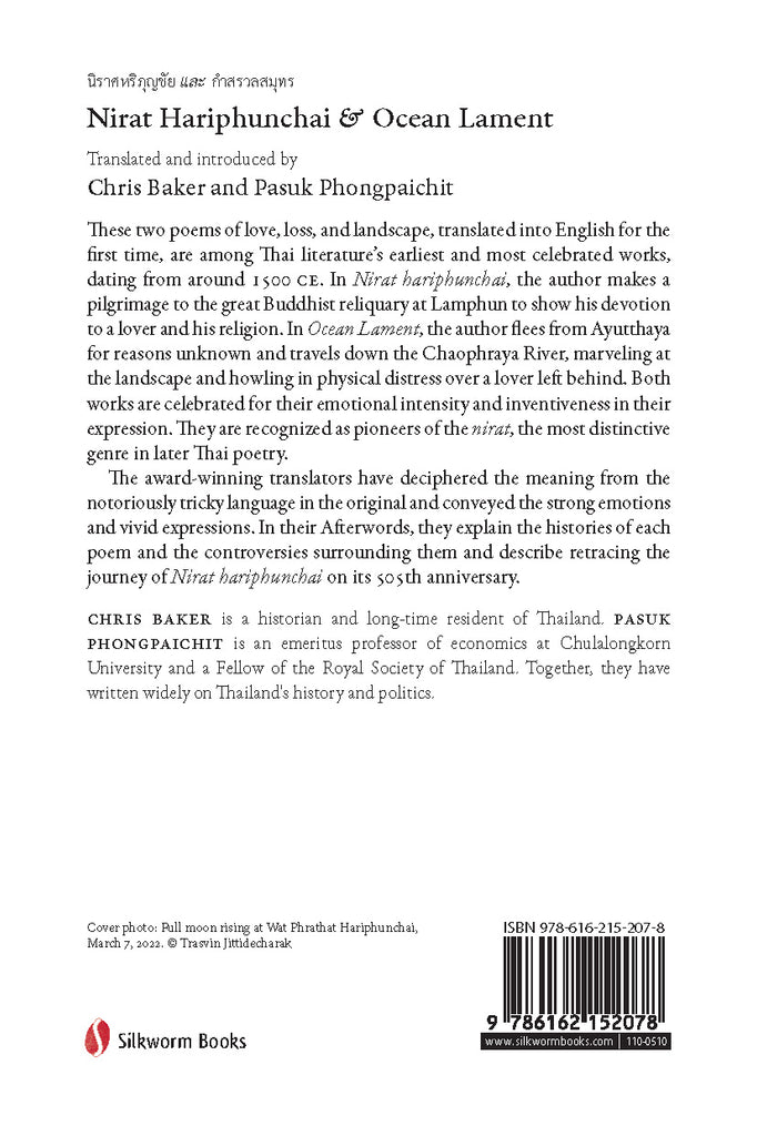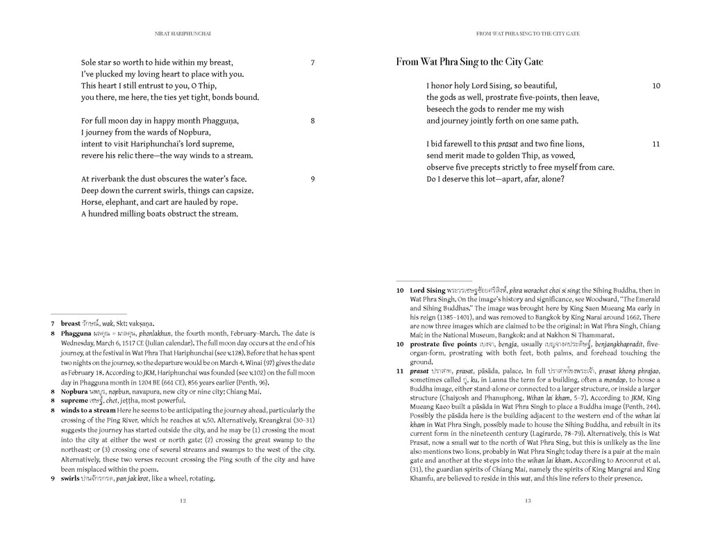 The award-winning translators have deciphered the meaning from the notoriously tricky language in the original and conveyed the strong emotions and vivid expressions. In their Afterwords, they explain the histories of each poem and the controversies surrounding them and describe retracing the journey of Nirat hariphunchai on its 505th anniversary.