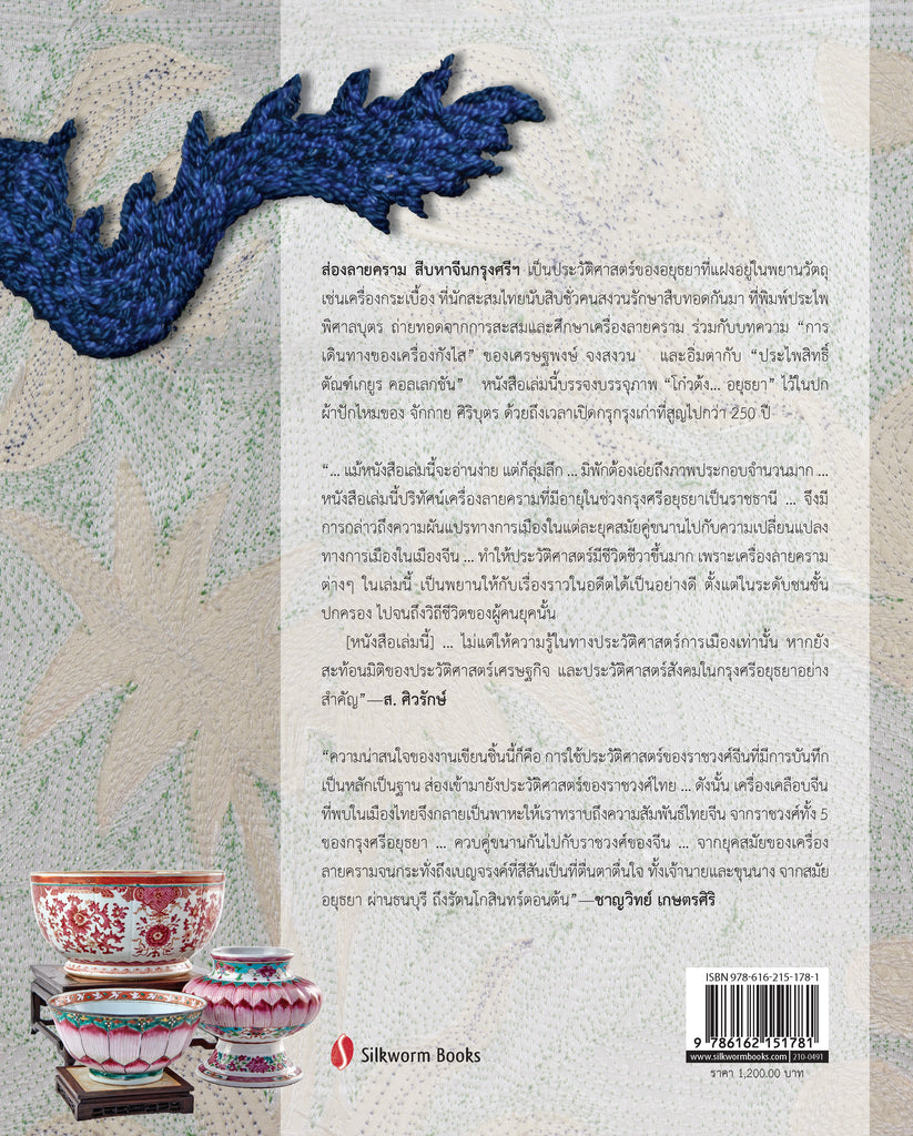 “... แม้หนังสือเล่มนี้จะอ่านง่าย แต่ก็ลุ่มลึก … มิพักต้องเอ่ยถึงภาพประกอบจำนวนมาก … หนังสือเล่มนี้ปริทัศน์เครื่องลายครามที่มีอายุในช่วงกรุงศรีอยุธยาเป็นราชธานี … จึงมีการกล่าวถึงความผันแปรทางการเมืองในแต่ละยุคสมัยคู่ขนานไปกับความเปลี่ยนแปลงทางการเมืองในเมืองจีน … ทำให้ประวัติศาสตร์มีชีวิตชีวาขึ้นมาก เพราะเครื่องลายครามต่างๆ ในเล่มนี้เป็นพยานให้กับเรื่องราวในอดีตได้เป็นอย่างดี ตั้งแต่ในระดับชนชั้นปกครอง ไปจนถึงวิถีชีวิตของผู้คนยุคนั้น