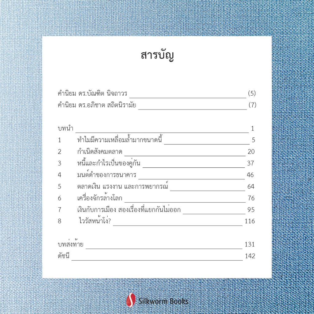 “. . . หนังสือเล่มนี้ตอบคำถามได้ง่าย แจ่มชัด ลุ่มลึก และครอบคลุมทุกประเด็นสำคัญๆ ได้ อย่างน่าอัศจรรย์ . . . ความมหัศจรรย์ของหนังสือนี้คือ เมื่ออ่านจบแล้วผู้อ่านจะเห็นได้เองว่า คำถามทางเศรษฐกิจนั้นสำคัญเกินกว่าที่จะปล่อยให้เป็นแค่เรื่องของผู้เชี่ยวชาญ เท่านั้น . . .”—ดร.อภิชาต สถิตนิรามัย