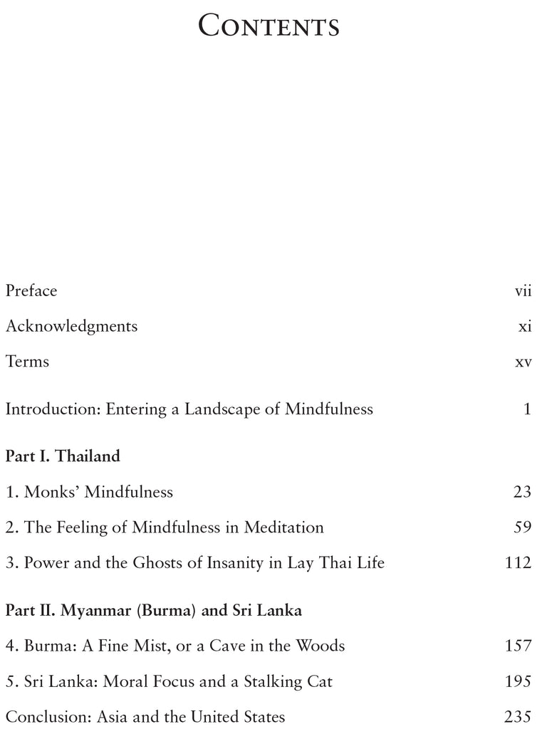 “This remarkably original and fascinating ethnography of mindfulness (sati) in Thailand, Burma, and Sri Lanka looks at traditional and modern(ist) Buddhism, western-derived scientifi c psychotherapy, and the everyday discourses of monks and laity. It should be read by Buddhists, scholars of Buddhism, and all modern practitioners and advocates of mindfulness training.”