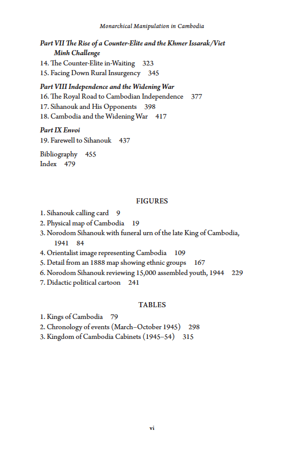 Deeply embedded Khmer cultural conventions and the interplay of charismatic power and patronage are not irrelevant to this discussion, indeed inform us as to the future and even present-day patterns of political behaviour. The skill of the young Sihanouk in navigating between Vichy France, Japanese militarists, republican opportunists, armed rural insurgency and French proconsuls is brought to life by a range of new archival documentation. A book is also a work of premonition as much inquiry, exploring how did a country of such grace and natural bounty come to be associated with the worst excesses of mass murder and genocide experienced in the twentieth century. The long political prelude as exposed in this book makes the now clichéd ‘tragedy of Cambodian history’ much more comprehensible.