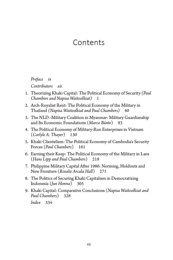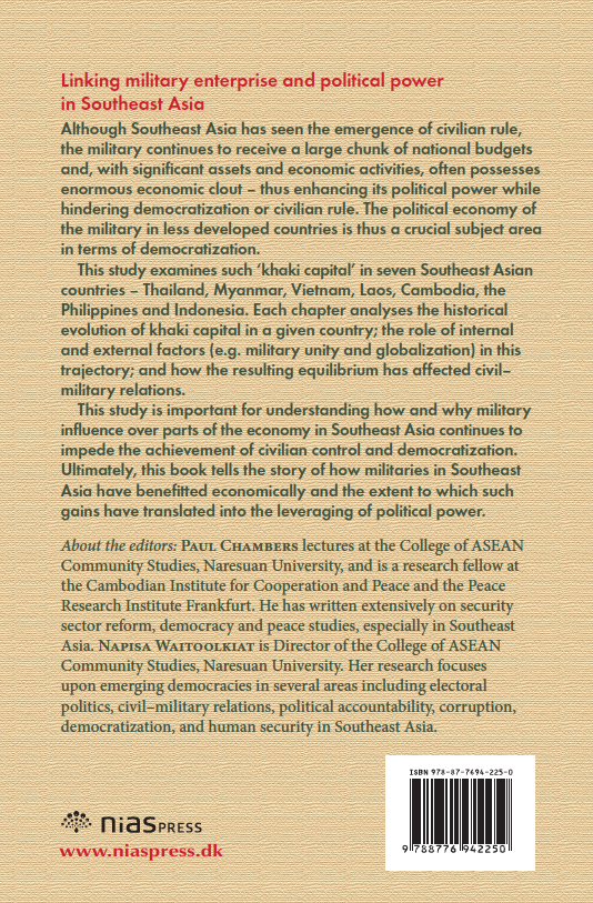 Although Southeast Asia has seen the emergence of civilian rule, the military continues to receive a large chunk of the national budget and, with significant assets and economic activities, often possesses enormous economic clout – enhancing its political power while hindering democratization or civilian rule. The political economy of the military in less developed countries is thus a crucial subject area in terms of democratization. This study examines such ‘khaki capital’ in seven Southeast Asian cases – Thailand, Myanmar, Vietnam, Laos, Cambodia, the Philippines and Indonesia. Each chapter analyses the historical evolution of khaki capital in the given country case; the role of internal and external factors (e.g. military unity and globalization) in this trajectory; and how the resulting equilibrium has affected civil-military relations. This work is important for understanding how and why military influence over parts of the economy in Southeast Asia has remained an impediment to achieving civilian control and democratization. Ultimately, this book tells the story of how militaries in Southeast Asia have benefited economically and the extent to which such gains have translated into the leveraging of political power.